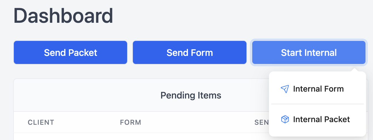 With Internal Forms, you can easily complete and manage these documents directly from your Zentake dashboard—no need to send them to clients. This efficient solution keeps your workflow seamless and ensures all internal documentation remains well-organized in one central location.